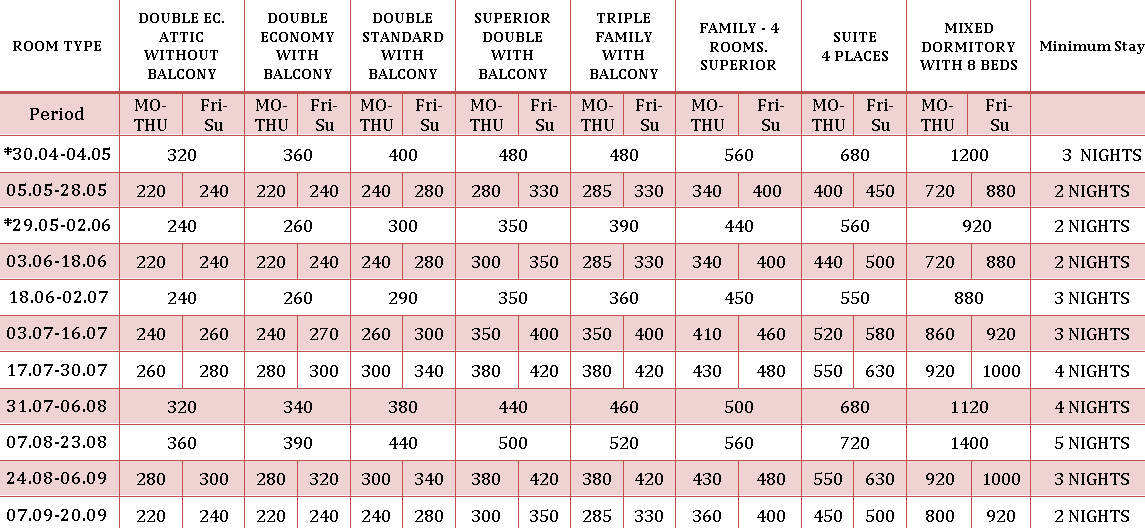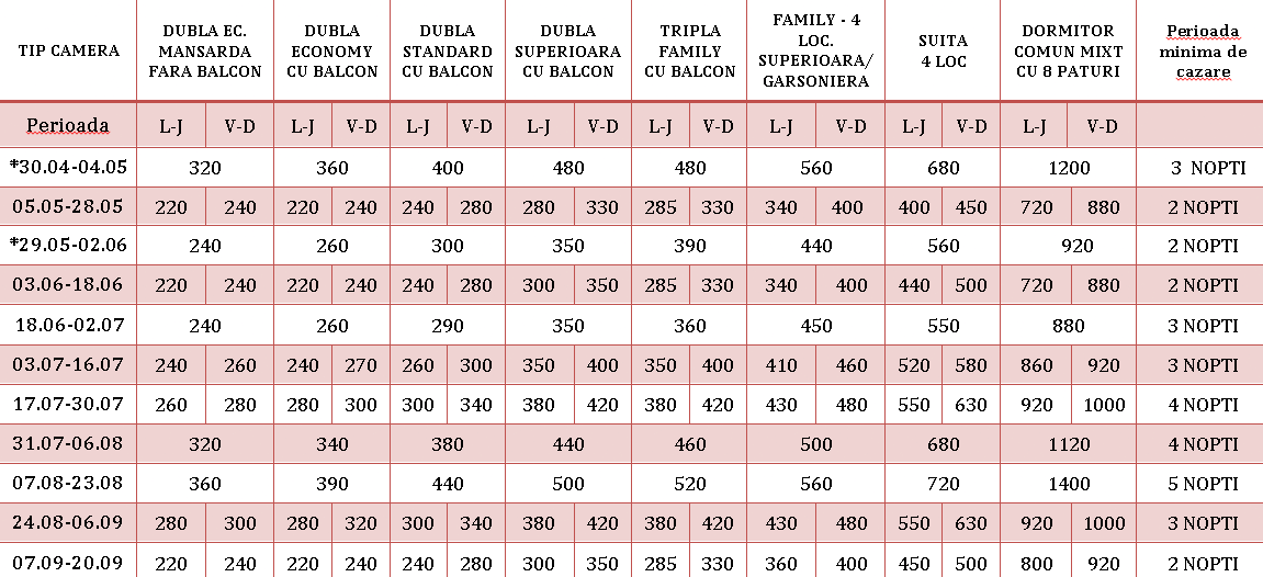 *1 MAI (30.04-04.05) – pachetul minim este de 3 nopti de cazare.